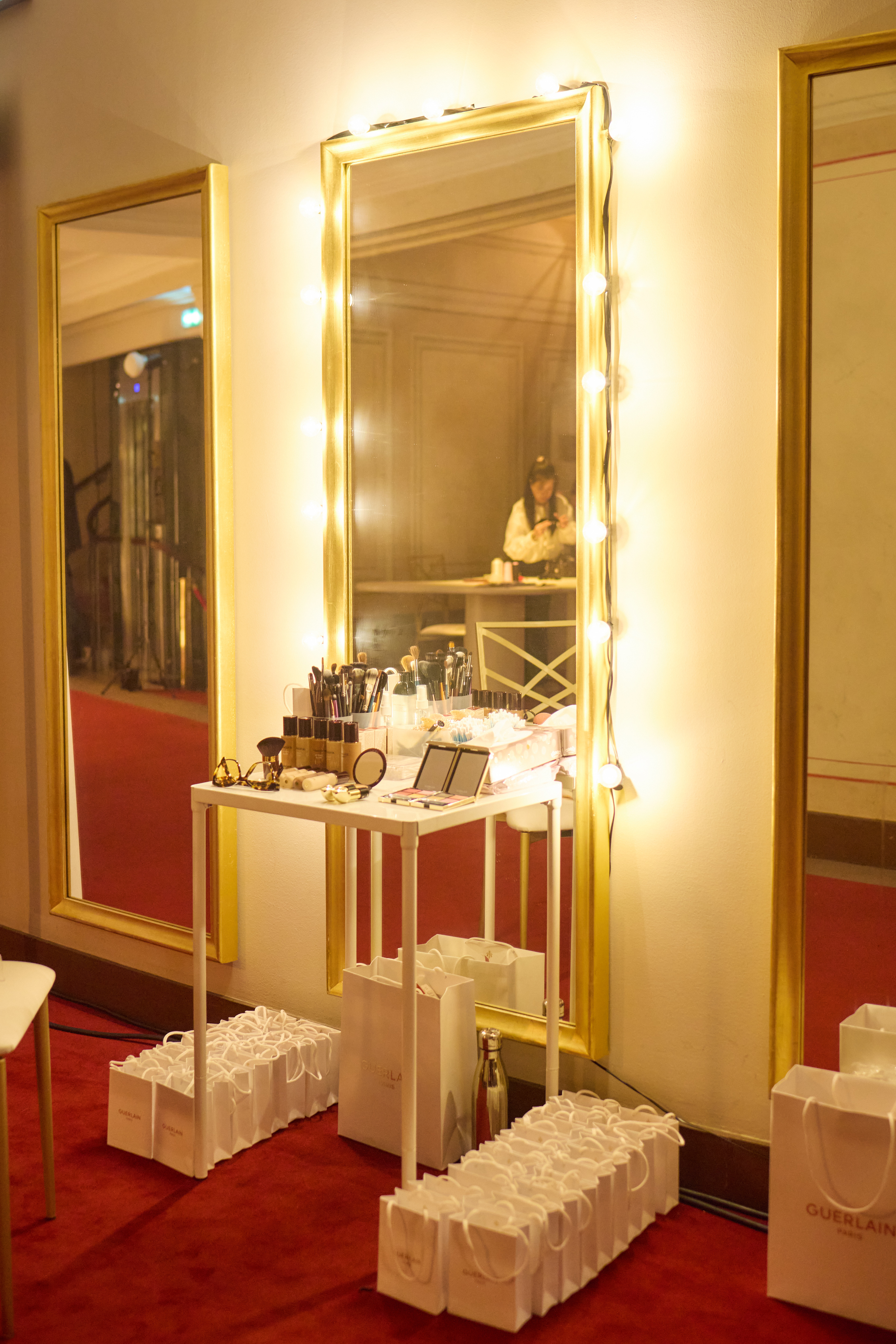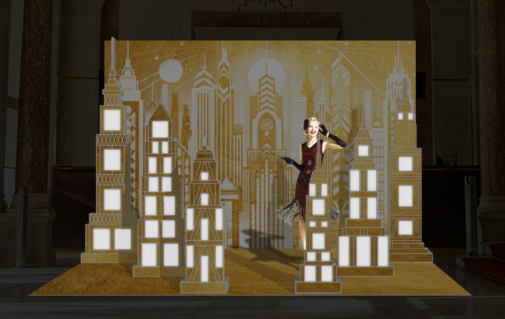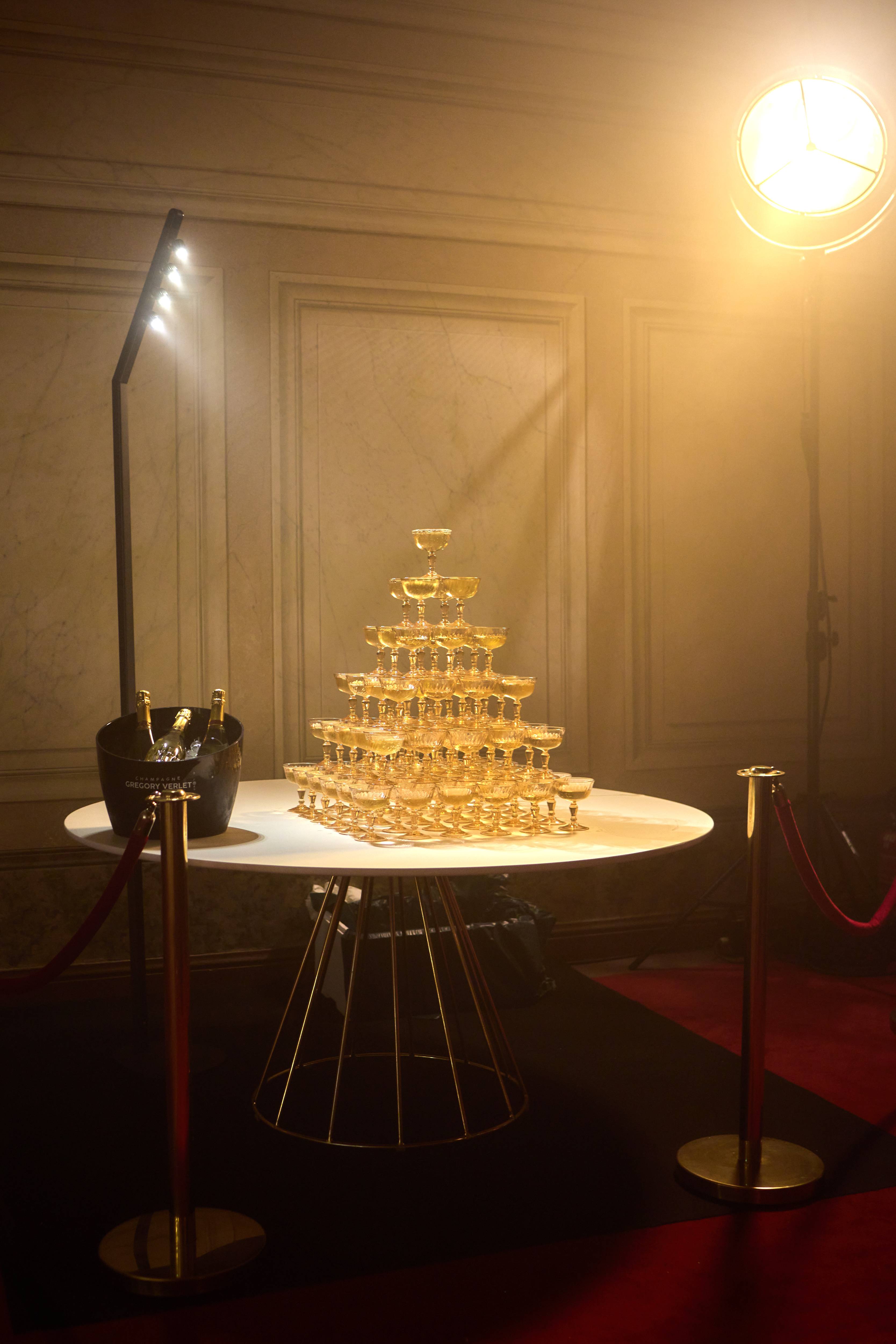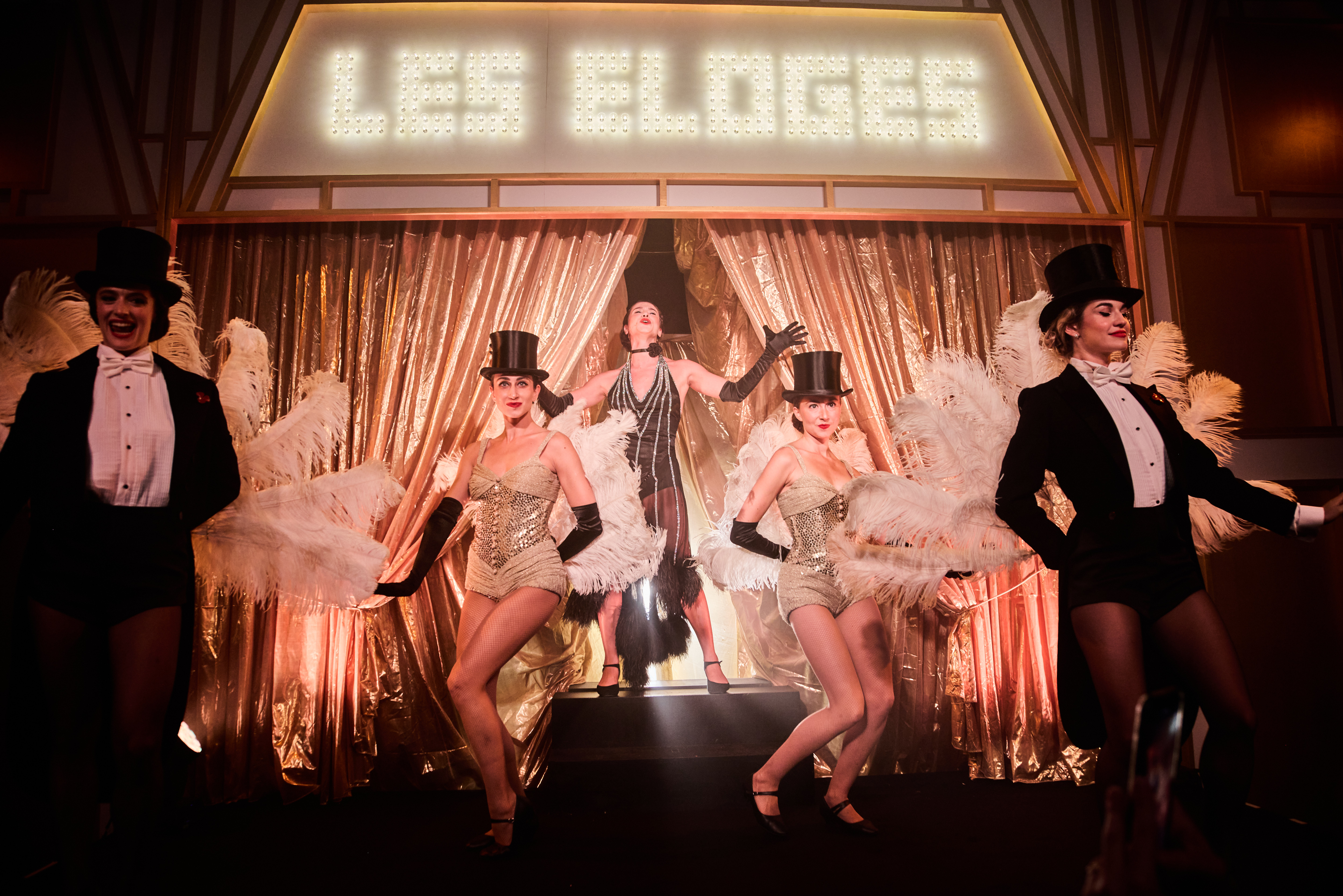 Un décor art déco avec un photocall avec 3 buildings éclairés, une scène avec "Les Éloges" écrit en ampoules, un studio de danse, une pyramide de champagne et plein d'autres surprises !